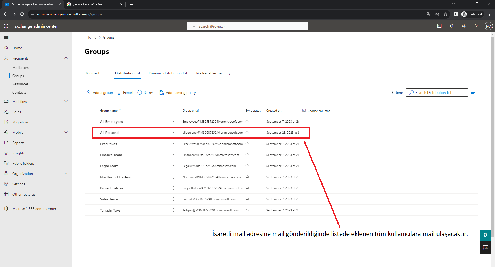 - E-posta Gönderme: Bir kullanıcı, “Muhasebe Grubu”na bir e-posta göndermek isterse, yalnızca “Muhasebe Grubu”nun e-posta adresini kullanması yeterlidir. Bu, tek bir e-posta gönderimiyle tüm grup üyelerine iletilir.